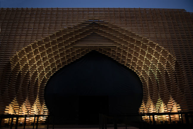 In order to have a neutral carbon footprint, all the materials used are reused and upcycled. In fact, they were merely temporarily diverted from their ultimate destination; after the conference, the wood timber was dismantled and rebuilt as a kindergarten in Marrakech.